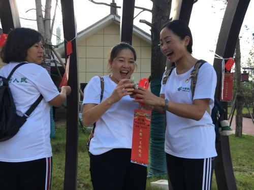 彩虹跑在燈謎競猜中拉開序幕,一張張懸掛著的燈謎,將日常生活常識濃縮其中,引得大家爭相競答。之后進入活動主題---彩虹跑,熱烈的場面將活動推向了高潮!大家領取了載滿中秋祝福的卡片后,帶著彩虹的顏色一起奔跑!賽途設置了紅色、藍色、綠色、紫色4個站點,到達終點后,以黃色手印可領取小禮品一份,鼓勵參賽職工堅持不懈、不言放棄的參與精神。
