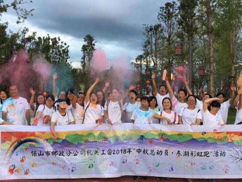 為迎接中秋、國慶的到來,9月19日保山郵政機關工會組織的“中秋總動員.東湖彩虹跑”活動,在保山市清華海東湖成功舉辦,公司領導與50多名身穿印有“中國郵政”標識T恤的職工,興致勃勃地參加了活動。