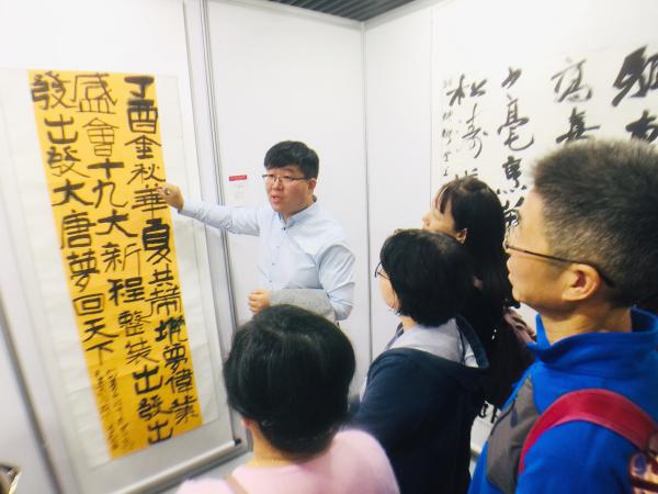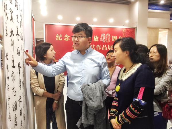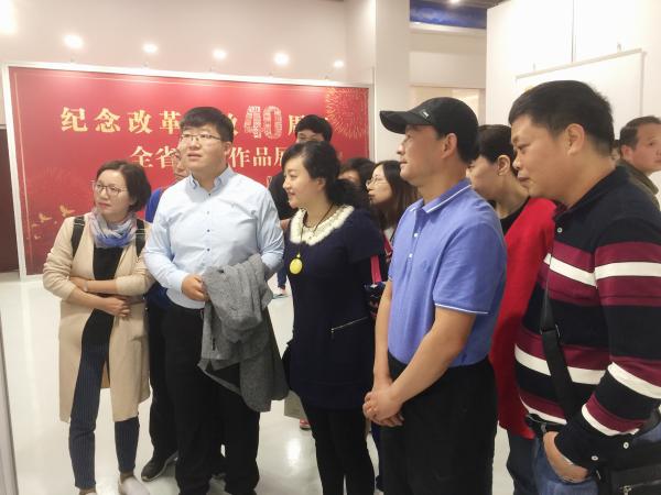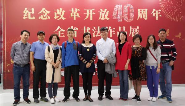 28日下午,省直屬機關工會書畫興趣小組在王龍老師的帶領下,首先參觀了紀念改革開放40周年全省書法作品展。