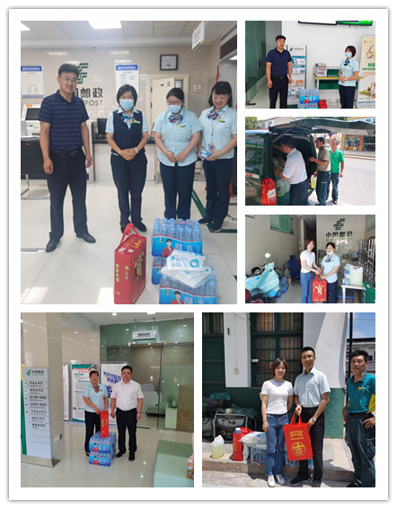 在六安市分公司、市郵政工會的關懷指導下,自7月22日始,六安市城區(qū)分公司組織開展“送清涼、促生產”慰問基層活動,由區(qū)分公司領導班子成員帶隊分成3個慰問組,將十滴水、礦泉水、涼茶等防暑降溫慰問品送到36個營業(yè)網(wǎng)點213名外勤人員的手中。