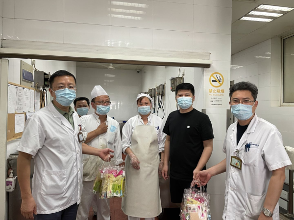 驕陽似火、赤日炎炎,上海郵電醫院的員工們堅持戰斗在防病治病的第一線。近日,上海郵電醫院院長、黨委書記闕挺,副院長、院工會主席胡桑一行,實地走訪了針灸科、食堂、門衛、修理組等高溫崗位,親切地問候了在場的工作人員,叮囑他們在工作中要注意保護好自身的健康,并為他們送上了一份份防暑降溫用品。并且叮囑管理人員要落實員工防暑降溫的各項措施,合理安排和調整工作時間,切實保障好員工的身心健康。在院領導關心下,食堂在高溫天為員工提供綠豆湯解暑,受到廣大員工的歡迎。