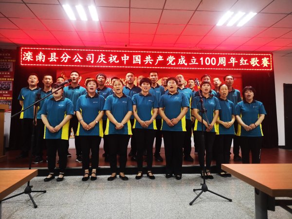 灤南縣郵政分公司內(nèi)燈火輝煌、紅旗招展、歌聲嘹亮,灤南縣分公司11支參賽隊伍,用一首首紅色經(jīng)典歌曲,贊美建黨100周年的輝煌成就,唱出對祖國明天的美好祝福。