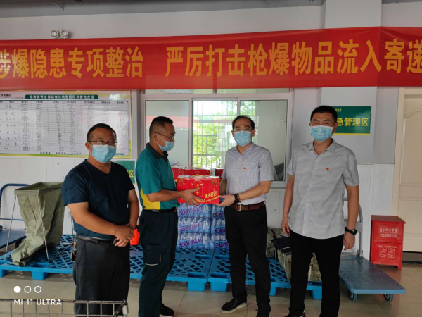 2021年8月12日,受省分公司領(lǐng)導(dǎo)委托,池州市分公司領(lǐng)導(dǎo)班子分別攜工會、綜合辦、黨建部、運管部等部門負責(zé)人一行冒著酷暑,先后去往一市三縣,深入到郵件處理中心、各支局所親切慰問一線職工,把省公司黨組的殷切關(guān)懷和工會組織的親切慰問送到了大家的心坎上,令置身酷暑中的員工們感受到一縷縷別樣的舒心清涼。 每到一處,市分公司領(lǐng)導(dǎo)與一線員工親切交談,為大家?guī)淼V泉水、王老吉等防暑降溫食品,對大家烈日作業(yè),任勞任怨、敬職敬業(yè)的工作精神表示由衷的感謝,并叮囑大家要合理安排作息時間,做好暑期防范工作,注意安全生產(chǎn),平安度夏。同時叮囑大家一定要落實好疫情防控措施,嚴格做好戴口罩、測體溫、作業(yè)場地消毒等日常工作。