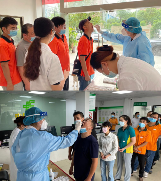 工會(huì)事先將人員名單、檢測(cè)時(shí)間、檢測(cè)地點(diǎn)統(tǒng)計(jì)確定后,8月12日上午8:00聯(lián)系三甲醫(yī)院馬鞍山市十七冶醫(yī)院上門,集中對(duì)首批244名員工進(jìn)行核算檢測(cè)。檢測(cè)現(xiàn)場(chǎng)秩序井然,員工手持本人核酸檢測(cè)條形碼,在不耽誤生產(chǎn)的情況下,按照醫(yī)護(hù)人員的提示有序、快速地完成了此次檢測(cè)。參檢員工直言:“上門檢測(cè)大大節(jié)省了去醫(yī)院門診排隊(duì)待檢的時(shí)間,自己的身心健康又多了一份保障?!?/p>