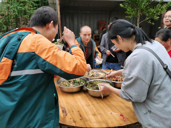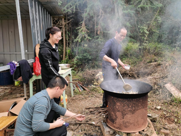 大家分工合作,燒柴、刷鍋、洗菜、炒菜......其樂融融,樂此不疲。中午,大家圍坐在飯桌旁開心的吃飯,一邊討論著誰摘的橘子又大又甜。