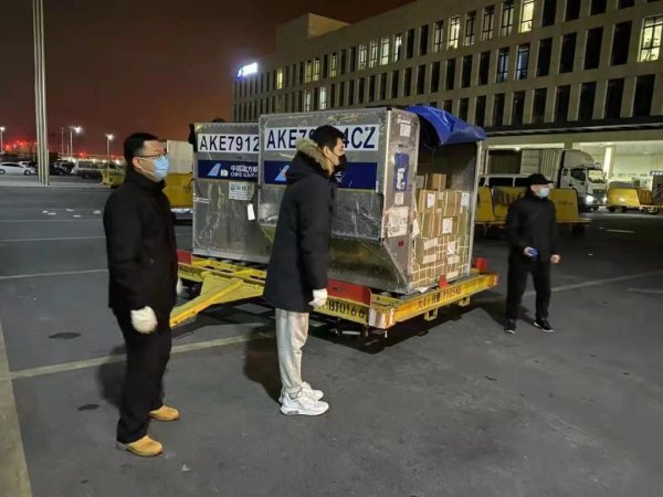 2022年1月28日,《北京2022冬奧會會徽郵票仿印徽章》和《北京2022冬奧會光柵明信片》兩款商函產(chǎn)品終于通過奧組委審核,成品即將從外阜印廠打印完成拉運至北京并分發(fā)到各個銷售網(wǎng)點。為了確保各服務(wù)網(wǎng)店銷售進場時限要求,商函新媒體中心的員工們,一直緊盯物流信息,當監(jiān)測到貨運包裹已經(jīng)抵達北京郵件綜合處理中心準備分揀的時候,由于商函中心就在郵件綜合處理場地內(nèi),部門負責人當即作出決定,指派員工直接到生產(chǎn)現(xiàn)場尋車拉件,節(jié)省出分揀再投遞的時間,1月28日晚9點,1萬件《北京2022冬奧會會徽郵票仿印徽章》率先全部拉回商函中心。
