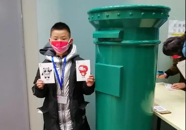集郵柜臺前,學生們每6人一組由老師引導挑選心儀的冬奧主題郵品,期間他們對主題郵冊、首日封、主題明信片等愛不釋手,并不時向工作人員詢問郵品的設計思路、郵票的種類等專業問題。 在諸多冬奧主題產品中,最受學生們歡迎的是帶有冰墩墩和雪容融設計元素的郵品;銷售現場,學生們對冬奧主題產品愛不釋手,有的學生在冰墩墩造型明信片上寫下對媽媽的祝福,并加蓋紀念戳;有的學生與好友手持冰墩墩和雪容融造型郵品在郵筒前打卡合影。