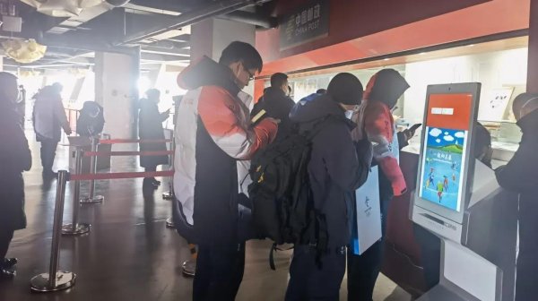 國家游泳中心臨時郵局:每天早晨,國家游泳中心臨時郵局還未開門,就有粉絲排隊等候在個性化明信片自助打印機旁。最近,個性化明信片自助打印機成了到場觀眾和場內工作人員以及志愿者追捧的對象,大家挑選出有紀念意義的照片以明信片的形式打印出來,不僅可以加蓋紀念戳,還可以將明信片寄出去。現場志愿者帶隊老師說:“仿佛又回到了學生時代,明信片寄送、收藏作為當時最喜歡做的事兒,到現在還記憶猶新,而且現在可以把手機存的同學聚會、特殊時刻、服務冬奧現場等照片以明信片形式打印出來,再通過投郵筒寄出去,感覺這個冬奧十分有意義”。