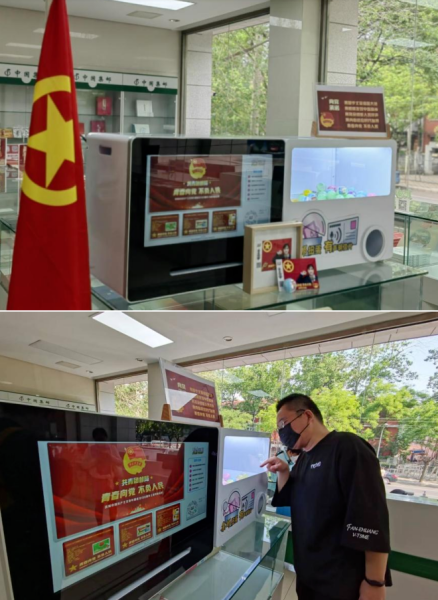 “北京 共青團”郵政日戳的啟用為《中國共產主義青年團成立一百周年》郵票和首日封增加了原地選擇,也為銷售工作增加了賣點。 在支局營業廳,電子廣告屏滾動播放的百萬莊“前進中的共青團郵局”宣傳視頻,吸引著用戶駐足觀看。現場分為淘寶區、新品區和百郵尋寶區進行展售,并擺放北京市集郵公司淘寶店官方粉絲群、BSC“西城網廳郵品”微信群和百萬莊郵局VIP集郵客戶群三個二維碼向線上引流?,F場提供“共青團(臨)”日戳加蓋服務?!扒啻合螯h 不負人民”集郵扭蛋有聲DIY明信片體驗非常新穎,同時設置的建團百年專題相框和“用腳步丈量祖國大地,用眼睛發現中國精神,用耳朵傾聽人民呼聲,用內心感應時代脈搏。青春向黨,不負人民!”聲音錄制內容,受到了郵迷歡迎。
