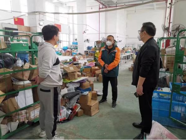 △區(qū)分公司領(lǐng)導(dǎo)在一線組織協(xié)調(diào)、參與收寄發(fā)運(yùn)工作,提升員工們的復(fù)工復(fù)產(chǎn)熱情?!?/p>