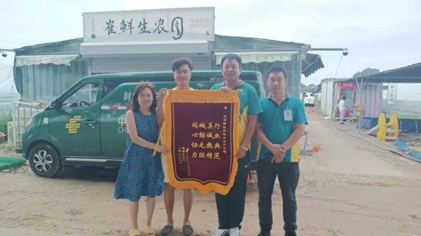 6月26日,客戶“崔鮮生農園”將一面寫有“同心協力、城郊無阻、真誠熱情、行業典范”的錦旗送到同城業務分公司東區集散中心員工手中,用戶特別設計出首字“同城真行”的夸獎,以表示對同城寄遞服務的認可。(北京郵政工會)