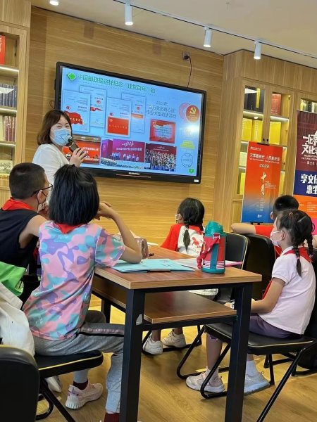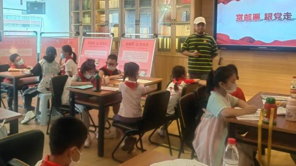 在圖書(shū)大廈會(huì)場(chǎng),首批28名中國(guó)精英小記者協(xié)會(huì)志愿者佩戴紅領(lǐng)巾出席。“賞郵票 跟黨走”活動(dòng)以“一展、一課、一互動(dòng)”三個(gè)環(huán)節(jié)營(yíng)造出積極、熱烈的紅色氛圍。培訓(xùn)會(huì)上,來(lái)自西城區(qū)分公司文傳部的授課老師向小記者們分享了郵票上的黨史故事;中央廣播電視臺(tái)節(jié)目制作中心主持人、節(jié)目編導(dǎo)、虎牙直播平臺(tái)官方簽約聲優(yōu)主播高波現(xiàn)場(chǎng)指導(dǎo)小記者們誦讀了在慶祝中國(guó)共產(chǎn)黨成立100周年大會(huì)上共青團(tuán)員和少先隊(duì)員代表的集體致獻(xiàn)詞。