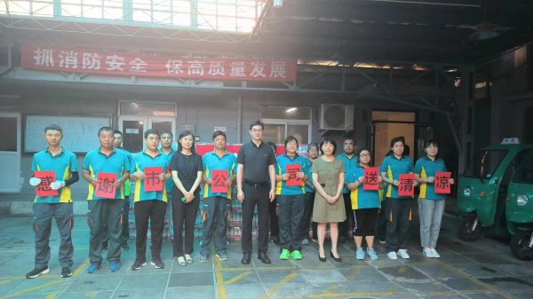7月11日,北京市分公司工會王賀利主席、工會辦公室主任宋陽來到朝陽區分公司永安里營業部、松榆東里支行,為一線投遞員、金融人員送清涼,發放礦泉水、飲料等夏季消暑飲品。