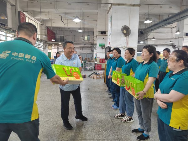 張副主席一行走訪了和平區中心郵政營業部各生產環節,與一線職工親切交談,并為投遞員送上了防暑慰問品。他表示,和平區中心郵政營業部立足于天津重要的鐵路樞紐——天津站,轄區內進出口郵件量大、政企單位多、服務要求高,營業部職工始終團結一致,高質量地完成各項服務工作,樹立了郵政良好形象。希望大家繼續發揚郵政優良傳統,積極投身“十項行動”,更好地服務用戶,為天津全面建設社會主義現大化大都市貢獻力量。