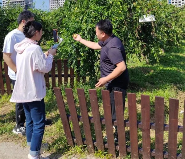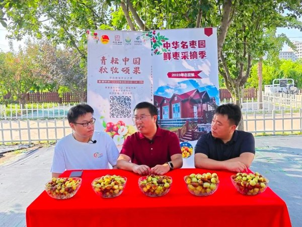 漫步北宮果園,棗樹一望無際,白棗、冬棗、葫蘆棗掛滿枝頭?!按蠹铱吹降倪@片樹上的果就是長辛店白棗,它是農產品地理標志產品。這個棗形狀長圓形,皮很薄,肉脆核小,吃起來多汁味甜,符合大家對‘夢中情棗’的一切想象。”9月13日,豐臺團區委聯合豐臺區郵政分公司、北京綠野田園休閑農場在北宮鎮中華名棗園開展“青耘中國·秋收碩果”直播助農活動。