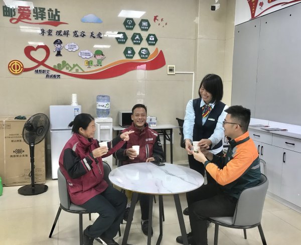 雙“十一”前夕,泰和縣分公司在繼城西郵政所“郵愛驛站”建立后,又在東門郵政所新建了“郵愛驛站”,并與全縣各郵政網點一道,全部面向全行業快遞公司開放,讓辛勞的同行兄弟進來歇歇腳、喝杯熱水,共同搭建和諧友愛的共享空間。
