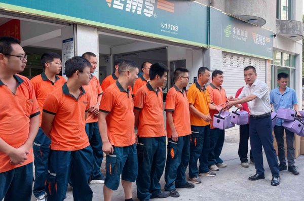在城東特快攬投部,尤慶華副主席向在高溫?zé)崂恕翱尽彬炏滦燎诠ぷ鞯臄埻秵T送去“十全十美”慰問品20余份,內(nèi)含飯盒、水壺、防暑藥物等實用物品,還細(xì)致查看了攬投部的作業(yè)環(huán)境與安全防護(hù)措施,特別囑咐他們要高度重視高溫季節(jié)的安全生產(chǎn),務(wù)必做到勞逸結(jié)合、保障身體健康,強(qiáng)調(diào)要將職工勞動保護(hù)工作作為黨建引領(lǐng)下服務(wù)群眾的重要抓手,真正落到實處。