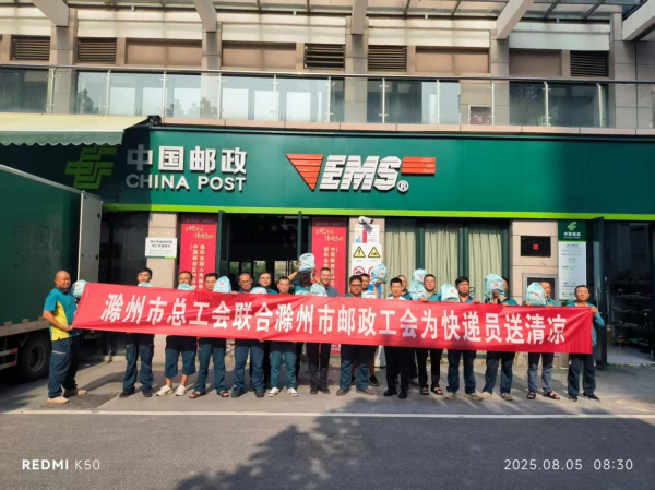 八月以來,滁州氣溫飆升超過35℃。烈日炎炎下,郵政一線快遞小哥們?nèi)匀粓允貚徫唬疾ㄔ诔鞘薪诸^,用專業(yè)的服務(wù)保障郵件正常攬收、轉(zhuǎn)運與派送。8月5日上午,滁州市總工會聯(lián)合滁州市郵政工會在戶外勞動者服務(wù)站點開展為快遞小哥送上清涼禮包慰問活動。 慰問組對一線郵政快遞小哥們在酷暑之下堅守崗位、愛崗敬業(yè)的精神給予充分肯定和贊揚,感謝他們在炎炎夏日的辛勤付出,并叮囑公司管理人員一定要做好員工的高溫防暑工作,確保全員安全度夏。