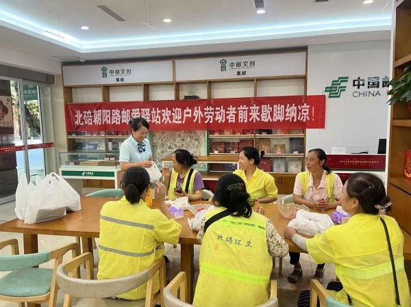在做好內部職工關愛工作的同時,北碚郵政充分發揮"郵愛驛站"的便民服務功能,為快遞小哥、環衛工人、外賣騎手、執勤交警等戶外勞動者打造溫馨的避暑休憩場所。北碚朝陽路"郵愛驛站"內,空調、休息區、冷熱飲水機等設施一應俱全,還貼心準備了清涼油、藿香正氣水等防暑藥品以及時令水果。此外,驛站還提供郵政業務優先辦理、寄遞優惠、快遞暫存、反詐宣傳、零鈔兌換等特色服務,真正實現了"一站式"便民服務。一位正在驛站休息的環衛工人動情地說:"這么熱的天能有個涼快地方歇腳,還能喝上涼茶、吃上西瓜,郵政的服務真是太周到了!"截至目前,驛站已累計服務戶外勞動者100余人次,成為烈日下名副其實的"城市清涼港灣"。