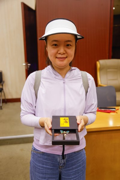 活動中,平日里與數(shù)字、報(bào)表為伴的財(cái)務(wù)人員圍坐在一起,暫時放下計(jì)算器與憑證,專注于手中的銅胎與翠羽。從按尺寸裁剪胎體,到根據(jù)紋樣精準(zhǔn)粘貼羽毛,指尖的細(xì)致操作與視覺上的色彩搭配,讓大家逐漸從 “數(shù)據(jù)核對” 的緊張狀態(tài)中抽離?!耙婚_始還在想著上午沒核對完的預(yù)算表,跟著步驟貼羽毛的時候,滿腦子都是怎么對齊紋路、調(diào)整角度,不知不覺就放松了。” 負(fù)責(zé)工會財(cái)務(wù)的馬老師,舉著剛完成的點(diǎn)翠胸針笑著說。兩個小時的制作過程中,現(xiàn)場沒有了往日核對數(shù)據(jù)的輕聲討論,只有工具碰撞的細(xì)微聲響與對作品細(xì)節(jié)的交流,當(dāng)一件件造型精致的點(diǎn)翠飾品完成時,大家紛紛互相展示、拍照記錄,成就感與輕松感取代了往日的疲憊。