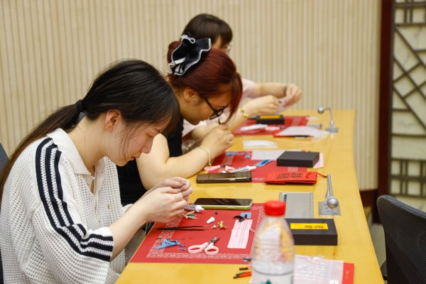 針對財(cái)務(wù)人員 “長期久坐、精神高度集中、壓力易堆積” 的工作特性,上海郵政工會挑出傳統(tǒng)心理健康服務(wù)模式,精選兼具 “專注力訓(xùn)練” 與 “美學(xué)治愈” 的非遺點(diǎn)翠手工制作,讓財(cái)務(wù)人員在指尖創(chuàng)作中轉(zhuǎn)移工作注意力、釋放精神壓力?;顒忧捌?,工會邀請非遺傳承人結(jié)合財(cái)務(wù)人員 “嚴(yán)謹(jǐn)細(xì)致” 的工作特質(zhì),重點(diǎn)講解點(diǎn)翠工藝中銅胎裁剪、翠羽粘貼的精準(zhǔn)技巧;現(xiàn)場提前備好分類規(guī)整的仿翠羽材料、刻度精準(zhǔn)的裁剪工具,全程安排專人 “一對一” 指導(dǎo),契合財(cái)務(wù)人員對 “流程規(guī)范、細(xì)節(jié)把控” 的工作習(xí)慣。