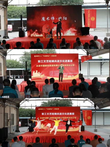 整場演出節目內容豐富、形式多樣,精彩紛呈。既有展現力與美的雜技,也有婉轉動聽的琵琶古箏合奏;既有引人入勝的魔術,也有深情激昂的歌曲《為幸福奮斗》《我們的中國夢》。舞蹈《綠色背影》、《幸福新起點》等節目以動人的舞姿傳遞了積極向上的力量,原創節目更是體現了郵政職工的特色風貌。特別設置的“工友之聲”環節,通過一線工友的真情分享,拉近了彼此距離,引發了深深共鳴。此次活動不僅極大地豐富了基層職工的精神文化生活,有效緩解了跨賽期間的工作壓力,更讓大家深切感受到了來自常州郵政大家庭的溫暖與關愛。現場員工情緒高漲,掌聲連連、笑語陣陣,紛紛表示將以此次活動為動力,把組織的關懷轉化為攻堅克難的實際行動,以更加飽滿的熱情和昂揚的斗志,全力以赴打贏旺季生產攻堅戰,為常州郵政的高質量發展貢獻更大力量。
