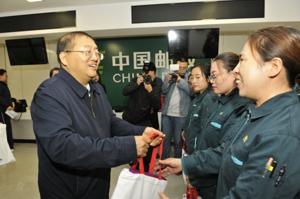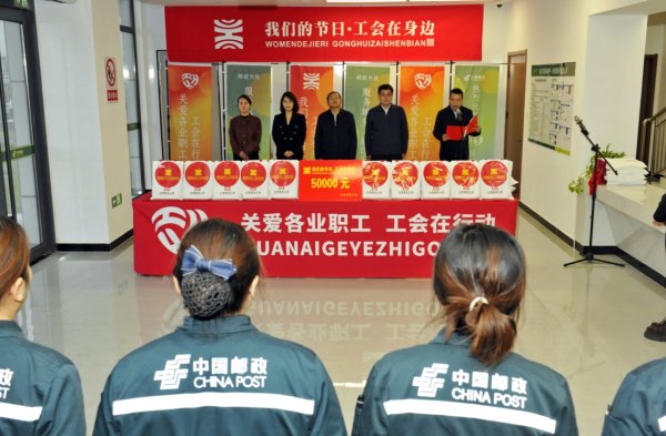 10月9日,在第56屆世界郵政日到來(lái)之際,山西省總工會(huì)黨組書記、常務(wù)副主席梁敬華一行蒞臨太原國(guó)際郵件互換局,看望慰問奮戰(zhàn)在基層一線的郵政員工,為他們送上慰問金和慰問品,并向廣大郵政員工致以節(jié)日的問候和崇高的敬意。省總工會(huì)黨組成員、副主席、省信息業(yè)工會(huì)聯(lián)合會(huì)主席楊曉蘭,省信息業(yè)工會(huì)聯(lián)合會(huì)常務(wù)副主席何燕,及省分公司黨委書記、總經(jīng)理劉軍亞,副總經(jīng)理、工會(huì)主席李永生陪同慰問。