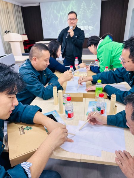 在此環(huán)節(jié),管文亮指導(dǎo)員工以兩人一組開啟創(chuàng)意挑戰(zhàn)。簡單的曲線被賦予無限可能。協(xié)作過程中,員工們相互配合,默契完成作品。分享環(huán)節(jié)更是笑聲不斷,創(chuàng)意想法的碰撞不僅激發(fā)了大家的想象力與創(chuàng)造力,更在輕松互動中拉近了同事間的距離,消融了日常工作中的疏離感,讓團(tuán)隊氛圍愈發(fā)融洽。