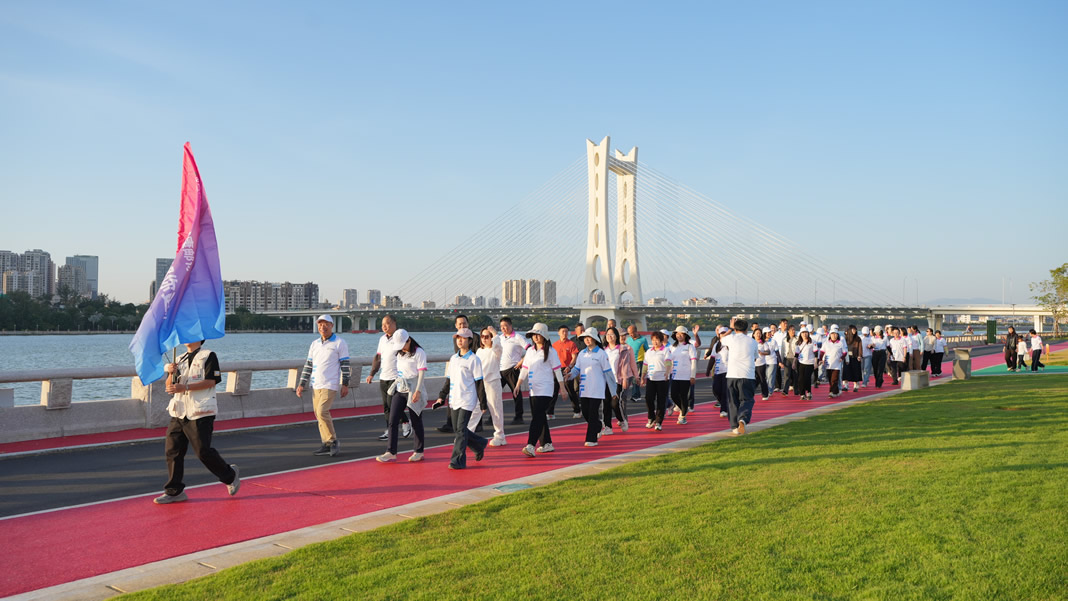 活動于當日16:30正式拉開帷幕。在市分公司黨委余書記鳴哨引領下,健步走隊伍精神飽滿地沿江邊步道闊步前行。大家沐浴著冬日暖陽,沿途打卡植物迷宮、角花林等特色景點,歡聲笑語中盡顯矯健身姿,終點處的“過線打卡”環節,定格下每一張洋溢著活力的笑臉。