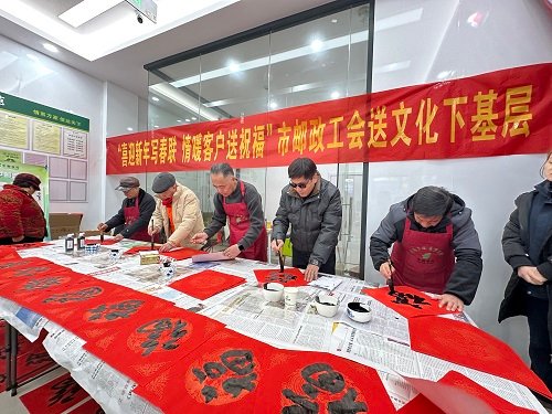 活動特邀麗水市書法研究會的藝術大師親臨現場,書案前紅紙鋪展、墨香氤氳,大師們揮毫潑墨、筆走龍蛇,一幅幅寓意吉祥的春聯與遒勁有力的“福”字躍然紙上。“風調雨順家業興,國泰民安財運旺”等定制春聯,既飽含對新年的美好期許,也寄托著郵政對客戶的真摯祝福。現場客戶踴躍參與,不少客戶手持剛出爐的春聯與福字,臉上洋溢著喜悅與感動。