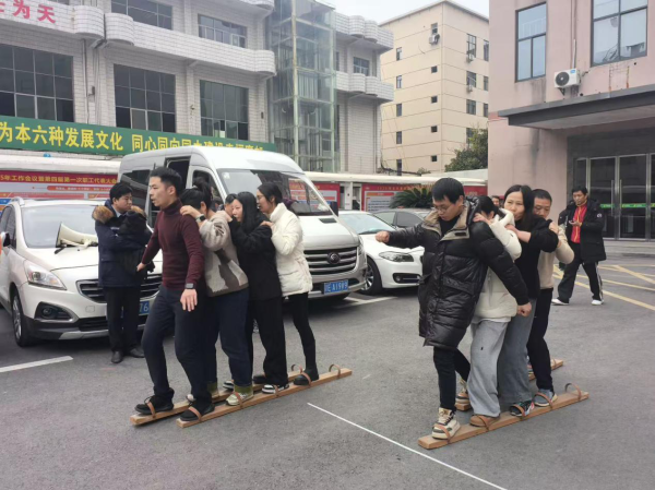 “步步為贏接力賽”中,隊員們腳綁協力道具,喊著整齊口號穩步前行,交接瞬間的眼神交匯,傳遞著信任與力量,賽道兩旁的加油聲此起彼伏。