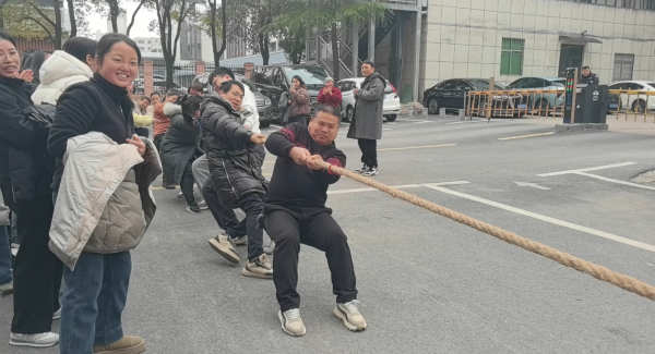 “合力攻堅拔河賽”作為壓軸項目,更是將現場氛圍推向頂點,10名隊員緊握長繩、腳蹬地面、身體后傾,使出渾身解數爭奪榮譽,場邊啦啦隊員的吶喊聲震耳欲聾,每一寸繩結的移動都牽動著所有人的心,三局兩勝的激烈比拼,完美詮釋了“團結就是力量”的深刻內涵。