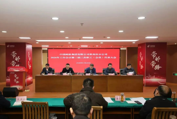 1月29日,常州市郵政分公司2026年工作會議暨第三屆第三次職工代表大會順利召開。會議全面貫徹落實黨的二十大、二十屆歷次全會、中央和省委經濟工作會議及集團公司、省分公司工作會議精神,總結2025年工作,部署2026年任務。