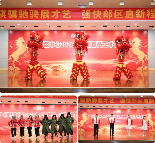 駿馬奔騰迎新歲,才藝紛呈展風(fēng)采。2月4日下午,廣州郵區(qū)中心2026年迎新春員工才藝展示活動(dòng)精彩上演。來自各部門的員工齊聚一堂,以精心編排的16個(gè)節(jié)目,呈現(xiàn)了一場精彩紛呈的文化盛宴,充分展現(xiàn)了郵區(qū)中心員工多才多藝、奮發(fā)向上的精神風(fēng)貌,贏得現(xiàn)場領(lǐng)導(dǎo)與觀眾的陣陣掌聲。活動(dòng)尾聲,省郵政工會(huì)副部長謝綠媛、省公司寄遞事業(yè)部副調(diào)研員何賢軍以及廣州郵區(qū)中心總經(jīng)理蔡和熙,分別為“我最喜愛的節(jié)目”獲獎(jiǎng)隊(duì)伍頒獎(jiǎng)。