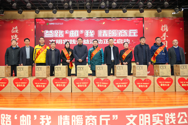 暖春公益行,郵政傳鄉情。2月6日,由商丘市委宣傳部(市文明辦)、商丘市總工會、商丘市精神文明促進中心、商丘市人力資源和社會保障局、中國人民銀行商丘分行、商丘市郵政管理局、商丘市火車站、商丘中心汽車站和商丘市郵政分公司聯合舉辦的“益路‘郵’我 情暖商丘”文明實踐公益活動啟動儀式在商丘郵政舉行。
