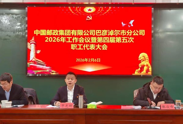 2月6日,巴彥淖爾市郵政分公司召開2026年工作會議暨第四屆第五次職工代表大會。會議全面貫徹落實集團公司、區分公司年度工作會議精神和市委市政府決策部署,總結2025年發展成效,系統部署2026年重點任務,動員廣大干部職工以實干擔當奮力譜寫巴彥淖爾市郵政高質量發展新篇章。