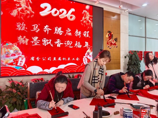 歲序更替,華章日新。為喜迎2026農歷馬年新春,豐富廣大職工精神文化生活,傳遞工會“娘家人”的溫暖關懷,營造喜慶祥和、昂揚奮進的節日氛圍,2月11日,省分公司直屬機關工會精心舉辦“駿馬奔騰 新年迎?!庇何幕顒?,以筆墨傳福、以文體聚力,讓濃濃年味與工會溫情充盈職工心間。