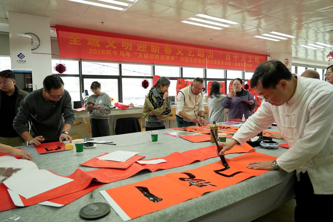茶山、城區、石碣、石龍等各分會也同步開展寫春聯、送福字迎新春活動,紛紛邀請書法功底扎實的老師現場創作,書寫馬年祝福、傳遞郵政溫情,活動氛圍熱烈,深受廣大職工喜愛與好評。