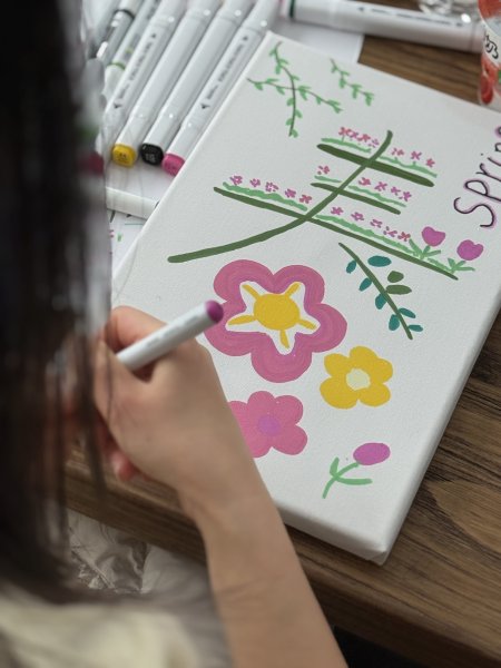 活動特邀專業老師全程陪伴指導,從色彩搭配、筆觸運用到構圖技巧,用通俗易懂的講解和手把手地示范,幫助大家快速掌握繪畫核心技能。大家自由發揮靈感,無論是靈動的春花、輕柔的春風,還是春日里的光影流轉,思緒跟著畫筆飛揚,顏料在畫布上暈染,色彩與畫筆成為連接春日與心靈的橋梁,在輕松愜意的藝術氛圍中,邂逅不一樣的自己。