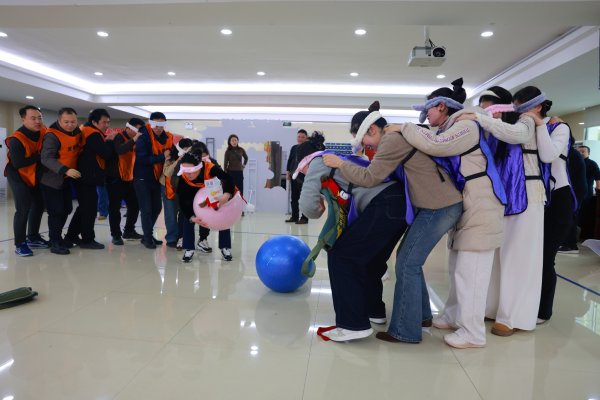 本次游藝會緊扣馬年主題,精心設計了多項兼具趣味性與競技性的游藝項目。在“一馬當先”游樂區(qū),只見兩隊參與者們穿戴好裝備搭肩站隊,隊尾人員指揮蒙眼隊員調整方位,搶運物資,兩隊人員你追我趕,引得圍觀者加油助威;“馬上有福”場地上,四名隊員轉圈、跨欄、跳躍、繞樁……比拼誰是最靈活的那個“仔”!笑料百出的姿勢,讓圍觀群眾笑彎了腰;“馬上有錢”場地上排起長龍,大家瞄準心儀的馬年吉祥物,精準投擲,每當擊中目標,現(xiàn)場便爆發(fā)出陣陣歡呼;“萬馬奔騰”則考驗著團隊的默契與力量,隊員們你來我往,將空中的氣球頂向對方的場地,吶喊聲、口號聲,將活動氣氛推向高潮。