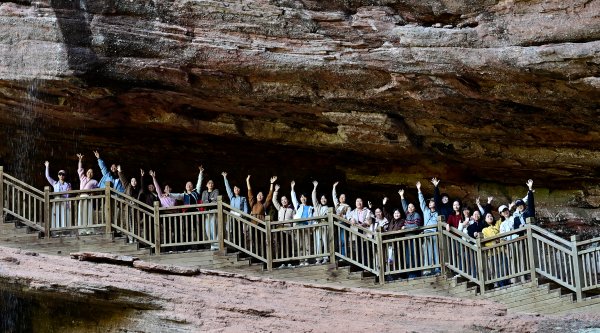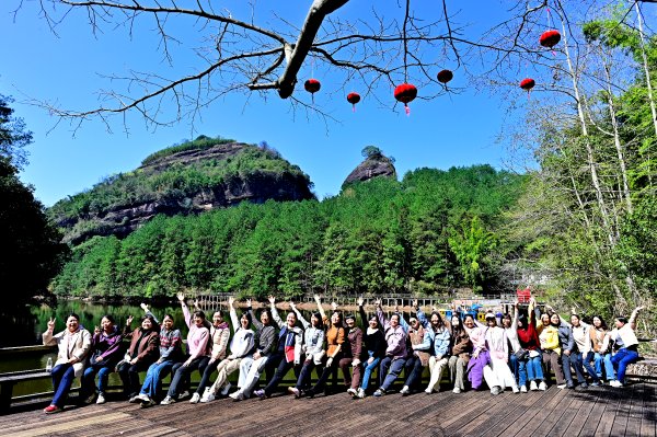 當天上午,女員工們沿著山間步道攀登而上,先后游覽了蠟燭峰、試劍石、神龜出水、玄女湖、一線天、猴子觀井、三疊泉、仙人望月、好漢坡等景點。山間空氣清新,山花爛漫,巖壁上名人墨客留下的對聯、詩詞相映成趣,形態各異的丹霞地貌更添幾分意趣,大家步履輕盈、心情舒暢,充分感受著春日自然之美。