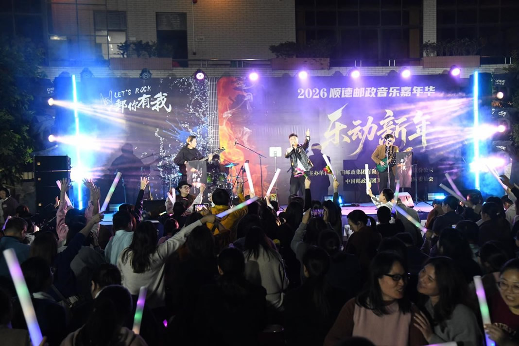 順德郵政工會率先舉辦“郵你有我,樂動新年”音樂嘉年華,超400名員工及家屬齊聚錦湖大院。活動現場高潮迭起,領導與員工同臺高歌,“郵你有我”樂隊傾情演繹原創曲目致敬一線崗位,穿插先進表彰、五福游戲、美食互動等環節,以音樂為紐帶,將組織關懷與新春歡樂深度融合,充分展現順德郵政昂揚向上的團隊風采。