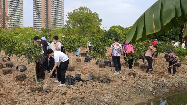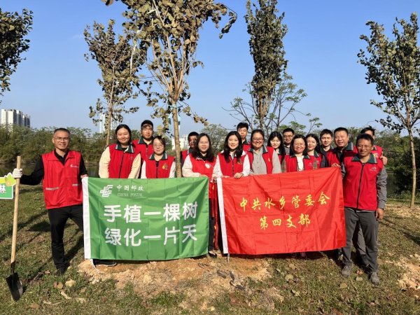 道滘分會與閘口村委會結對共建植樹,有序完成樹苗栽植養護,為掌洲公園增綠添彩,展現郵政員工愛綠護綠良好風貌。