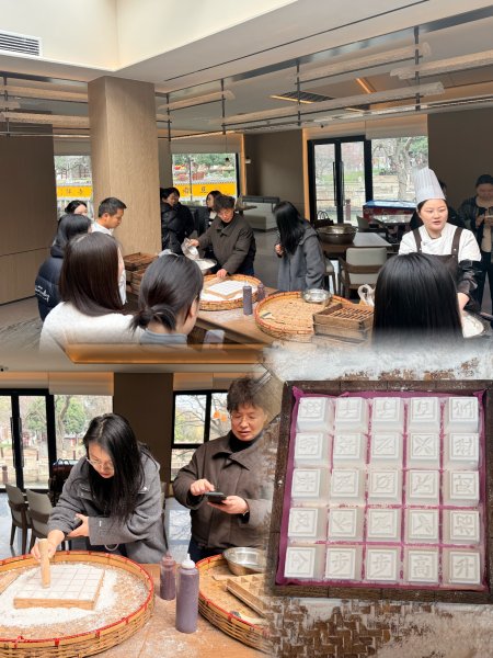 尺糕制作環節充滿了煙火氣與互動樂趣。大家圍站在工坊桌前,認真學習篩粉、填模、按壓、脫模等傳統工序,分工協作、相互切磋。當熱氣騰騰的尺糕新鮮出爐,清甜的香氣彌漫全場,大家品嘗著親手制作的美味,分享著手作的快樂,現場歡聲笑語不斷。