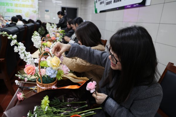 活動(dòng)現(xiàn)場(chǎng),花香縈繞,氛圍溫馨熱烈。專業(yè)花藝師圍繞花材特性、色彩搭配、造型技巧等內(nèi)容進(jìn)行細(xì)致講解,從花材選擇到修剪造型,從花語寓意到插花步驟,耐心示范、悉心指導(dǎo)。女職工們興致盎然,紛紛化身“花藝師”,在琳瑯滿目的花材中精心挑選,結(jié)合自身審美與創(chuàng)意,剪枝、摘葉、搭配、固定,每一步都專注認(rèn)真。大家相互交流心得,分享插花靈感,指尖翻飛間,錯(cuò)落有致的花束逐漸成型,色彩斑斕的花藝作品不僅裝點(diǎn)了空間,更承載著女職工們對(duì)美好生活的熱愛與向往。