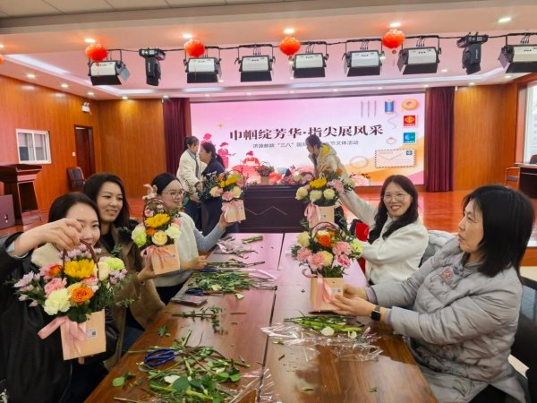 插花活動如期開啟,現場花團錦簇、生機盎然,各色鮮花錯落擺放。在老師的指導下,大家修剪枝葉、搭配色彩,將春日的生機與美好融入花藝作品中,現場歡聲笑語不斷,定格下最美的巾幗笑顏。